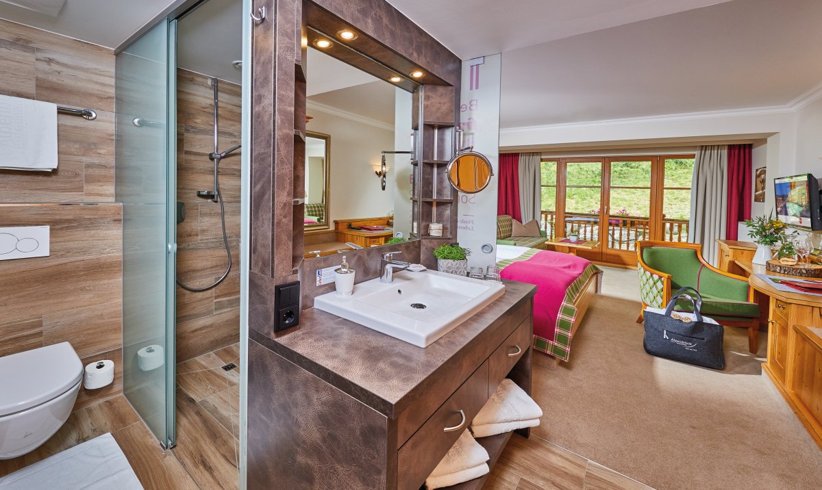 Wir übernachten im Sportresort Alpenblick ****S. Alle Zimmer sind ausgestattet mit Bad oder Dusche, WC, Föhn, TV, Telefon, Safe. Das Hotel verfügt über einen 1100 m² grossen Wellnessbereich mit Innen- und Aussenpool, Bio-Kräutersauna, Infrarot-Sauna, Fitness- und Gymnastikraum, Ruheräume und einen Vitalgarten mit Kneipp-Pfad.